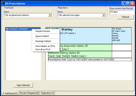 If you right click on a patient name in the Authorised list, you can choose one of the following options: