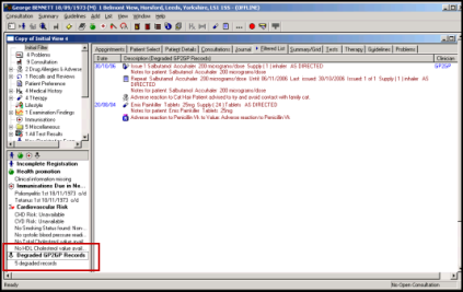There are some elements of electronic health records which cannot be transferred in a completely structured form. This is due to different conventions on different GP clinical systems and where different coding schemes are used. Vision to Vision transfers are unlikely to produce degraded records, but other suppliers to Vision (where different codes are used) may. This particularly affects medication, allergies and some business functions such as recalls. Some data may be missing a Read code. This kind of record, which require attention, is called a degraded record.