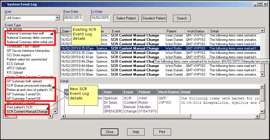 The Event Log - Other Events have been updated to show details of the following SCR processes: