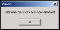 - On successful sign in, you are prompted that "national services are now enabled". Click OK to continue.