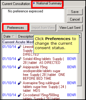 Whilst the patients registration status is "Applied" their current consent status can be viewed in Consultation Manager - Patient Detail - Preferences. When their registration is updated to "Permanent" their consent status is also available to view on the National Summary Tab.