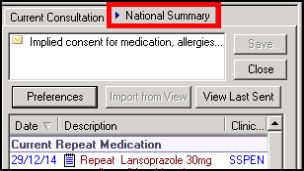 - The National Summary is displayed on the right of your screen, with the current consultation tab.