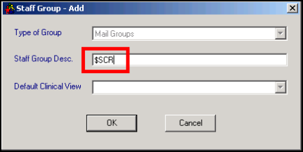 - Type $SCR in the Staff Group Description box.