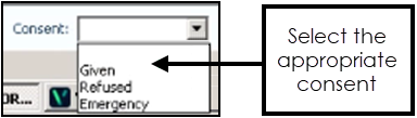 - You must now record the patient's consent type from the Consent list at the bottom of the screen:
