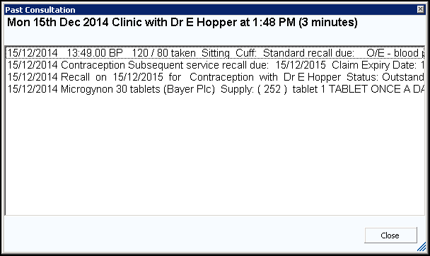 - View - Displays the information recorded in the selected consultation: