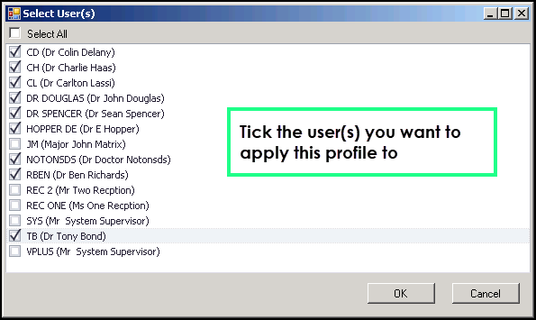 - Either tick Select All or tick the individual user(s) you want to apply this profile too.