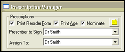 • Assign To - This applies to electronic prescriptions and denotes the intended member of staff who is next in line to process the prescriptions. This defaults to the same as the signer, though it is possible to assign the patient’s prescriptions to another member of staff if required. The selection is stored against the prescription record and used by the bulk prescribing view to produce the list of prescriptions to process.