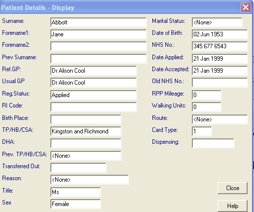 Note - Patient Details or Address Details can also be displayed from the Patient Details screen (see Patient Details and Contacts )