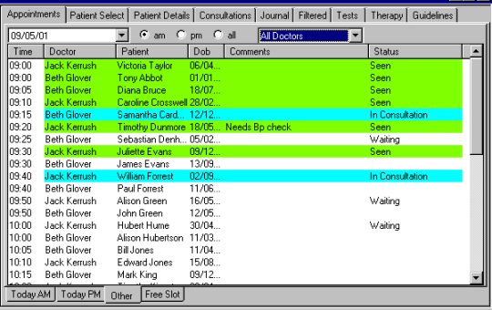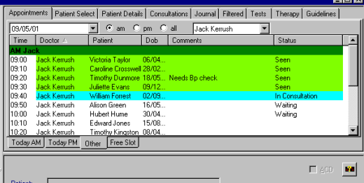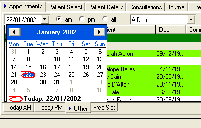 Today AM and Today PM – These buttons can be used to display this morning's or this afternoon's appointments. The display will default to Today PM if it is currently the afternoon, or Today AM if it is the morning. All will display all appointments for the day regardless of the am/pm session break.