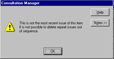 If you try and delete an issue which is not the most recent, you are warned: