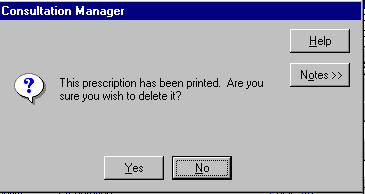 Only the most recent issue from a repeat master can be deleted. On Therapy, point to the relevant line and click with the right mouse button, selecting Delete. The Therapy - Delete screen displays. Click Delete The Issue count will decrease by one, and the Last Issue Date will subsequently be altered to reflect the deletion. If it has not been printed, it will be deleted without warning.