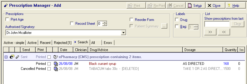 You can delete a CMS (Serial Prescribing) drug item after it has been printed by right clicking on the item and selecting delete. You are then prompted with the following warning: