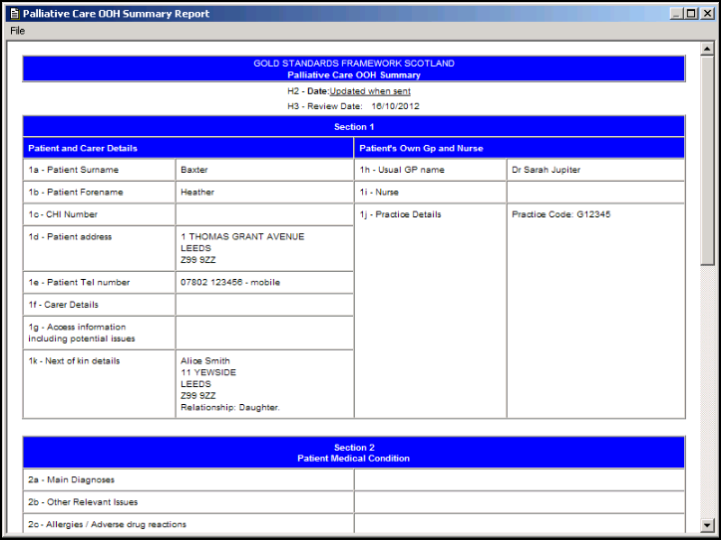 Palliative Care Reports - File Out of Hours Summary Report