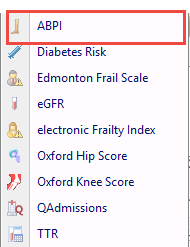 1. From Consultation Manager, click on the Vision+ icon on the floating toolbar and select Calculators - Other - ABPI.