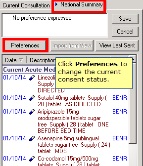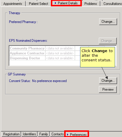 Whilst the patients registration status is "Applied" their current consent status can be viewed in Consultation Manager - Patient Detail - Preferences. When their registration is updated to "Permanent" their consent status is also available to view on the National Summary Tab.