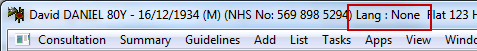 Consultation Manager patient demographic banner with Language displayed