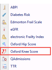 - From Consultation Manager, click on the Vision+ icon on the floating toolbar and select Calculators - Other - Oxford Knee Score.