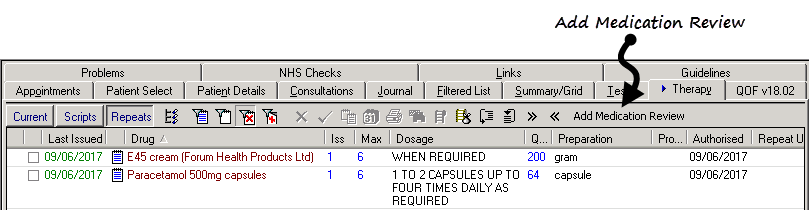 Note - You do not need to add a medication review for each repeat that a patient is on, one medication review with a generic Read code can serve for all of them. However, from a nGMS contract point of view, you do need to enter specific medication review codes for asthma and epilepsy.