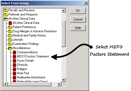 . - Select Add Entity, open All other Clinical Data - Miscellaneous and highlight MED3 Doctors Statement.