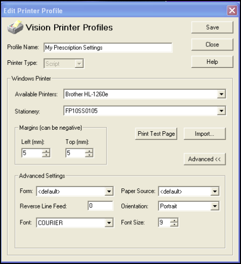 - Paper Source - Printer Bin to use. The default is the current printer bin, eg <default>. For Scotland where there is separate GP and nurse prescription stationery, you can specify the bin as you add or edit each.