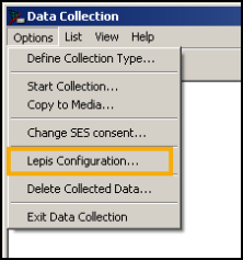 - From the Data Collection screen, select Options – LEPIS Configuration.
