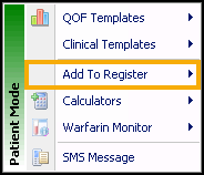 You can quickly add patients to a QOF/QAIF register using the Vision+ Add to Register option: