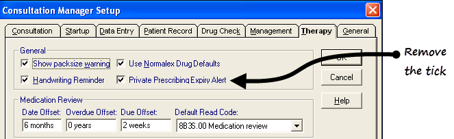 2. In the General section, remove the tick from Private Prescribing Expiry Alert.