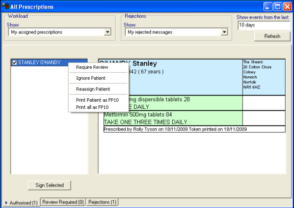 If you right click on a patient name in the Authorised list, you can choose one of the following options: