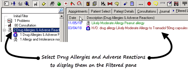 , select the patient required. - Simply select Drug Allergies & Adverse Reactions.