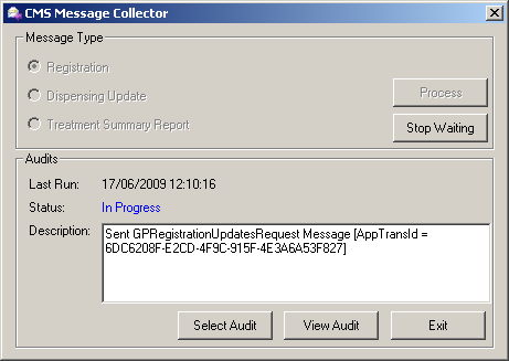 - From the Vision front screen, select Modules – CMS Message Collector.