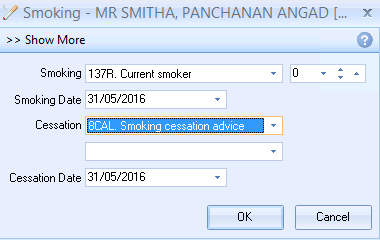- If the patient is a smoker or ex-smoker record the smoking cessation advice and optionally enter a second cessation code.
