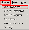 - Alternatively, you can choose QOF Templates from the Vision+ toolbar of the Vision+ Menu. This gives you the option to view all Templates or select a specific one.