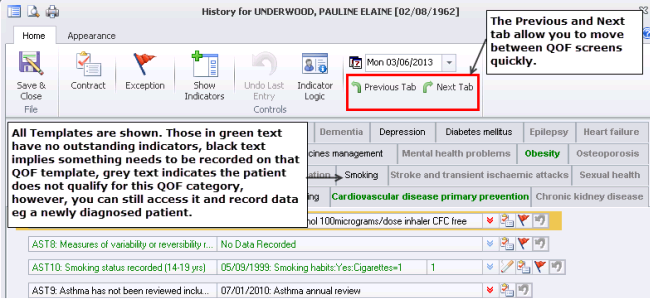 From the Consultation Manager Toolbar or the Vision+ menu, select QOF Templates andselect All Templates. You can now view the QOF categories.