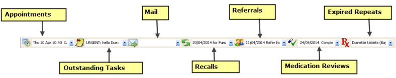 The Futures Toolbar appears at the top of all the Apps screens except from the Summary screens. It is designed to show you the patient's recent or anticipated events. From the toolbar you can add a new item, invoke an application, or review the data in the patient's record in Consultation Manager. A tooltip indicates the function of each button.
