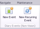 - New Recurring Event - As above, click Recurrence in the Event screen to open the Recurrence screen, see Non Vision Events.