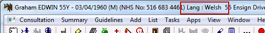 Consultation Manager patient demographic banner with Language displayed