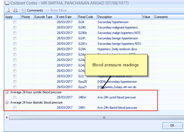• Read code 246W - Average 24 hour systolic blood pressure reading