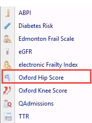 - From Consultation Manager, click on the Vision+ icon on the floating toolbar and select Calculators - Other - Oxford Hip Score.