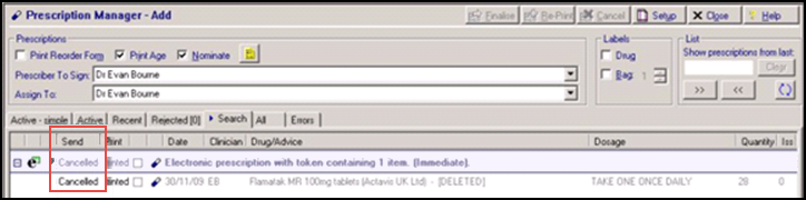 Prescribers, or other authorised staff working in the GP practice where the prescription was generated, can cancel electronic prescriptions at any point until they are downloaded by the dispensing contractor.
