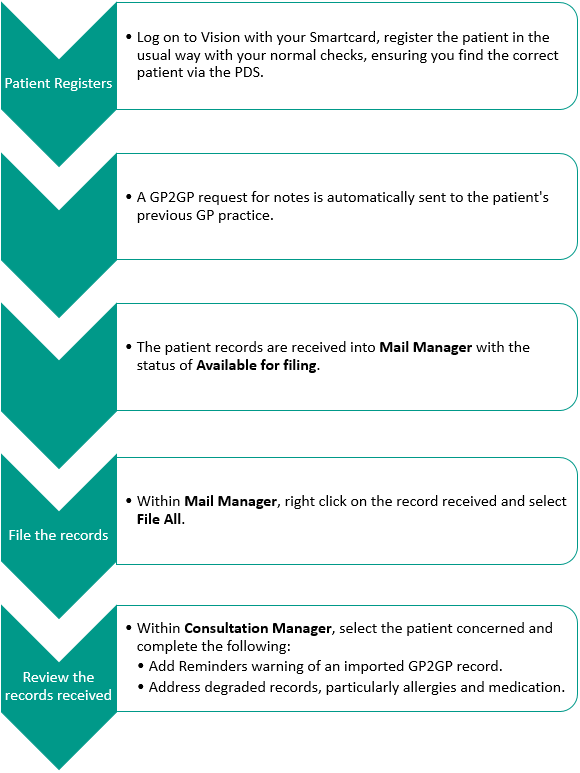 When one of your patients registers with a new practice, the following GP2GP processes occur: