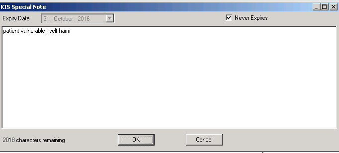 Note - Text over 2048 characters is not included in the extract. - If this information has an expiry date, remove the tick from Never Expire and select an expiry date from the Expiry Date calendar.