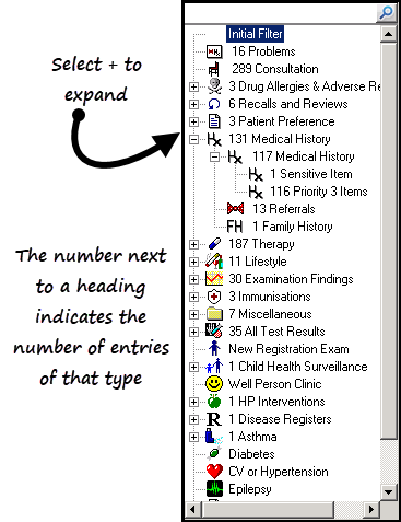 Remember - The tabs offered depend on your settings, see Consultation Manager Setup - Patient Record for details.