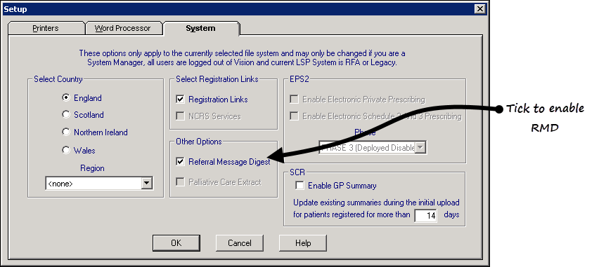 The RMD can be inactivated at any time by simply removing the tick above. Vision reverts to using problems for sending e-Referral information.