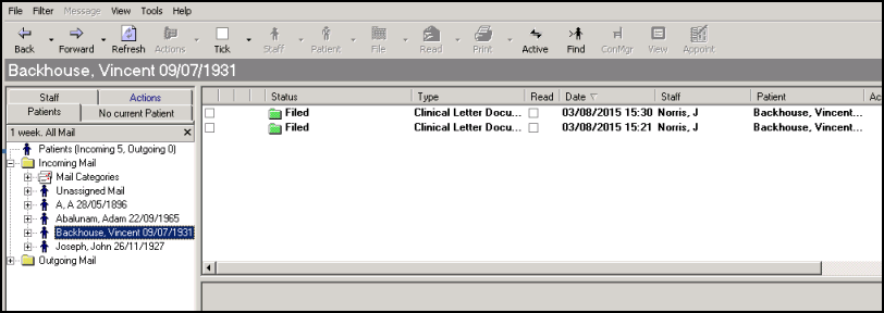 - The clinical letter now displays in Consultation Manager having been received and filed via Mail Manager: