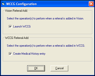 Launch WCCG - Tick to launch WCCG when you add a referral to Vision 3. Selected by default.