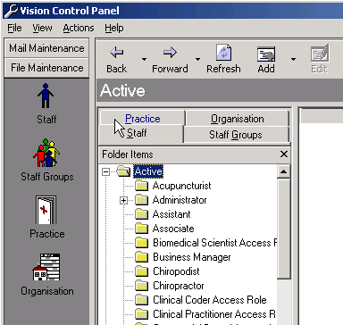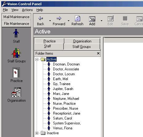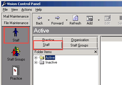 , or the Staff tab to list existing staff. - Staff display under two folders: