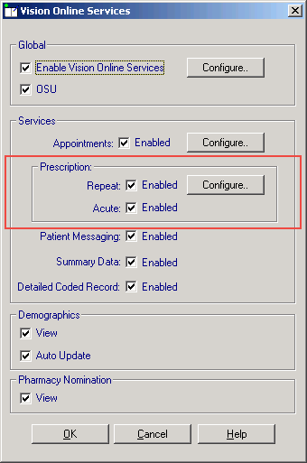 - From Control Panel -File Maintenance - Online Services - Prescription tick: