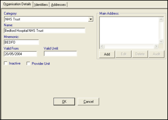 - Provider Unit - This box is ticked by default for a Hospital, but not for an NHS Trust. If ticked, this ensures that: