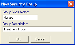 You can add your own new group, to which you can then assign common security rights. For example, the group could consist of practice nurses, or receptionists