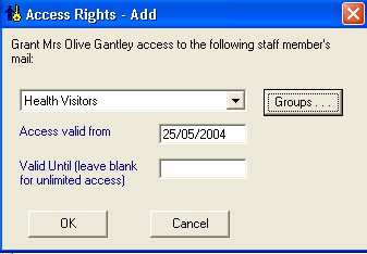 - Right click on the name of the staff member who is being given access rights to another group's mail.